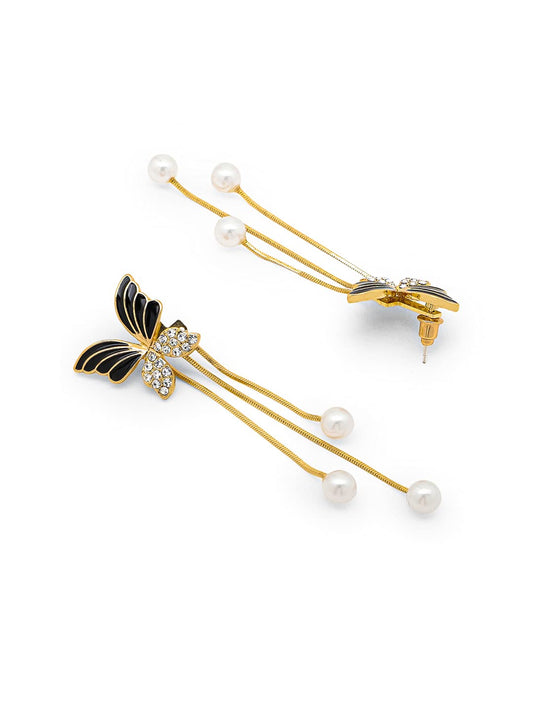 Earrings for Women and Girls Butterfly Pearl drop Designed Dangler | Gold Tone Long Dangler Earrings | Birthday Gift for girls and women Anniversary Gift for Wife