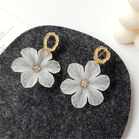 White Floral Gold Plated Hoops Earrings for Women and Girls