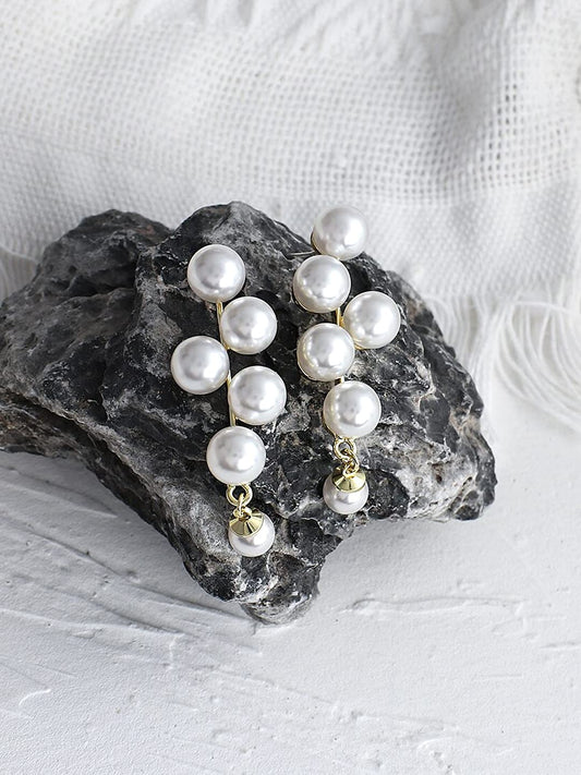 Earrings for Women and Girls Fashion White Pearl Dangler Earrings | Gold Plated Long Dangler Earrings | Birthday Gift for Girls & Women Anniversary Gift for Wife