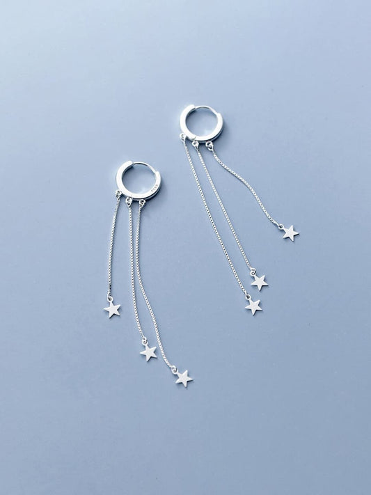 Earrings For Women Silver Toned Round Stud Triple Chain Stars Hanging Dangler Earrings For Women and Girls