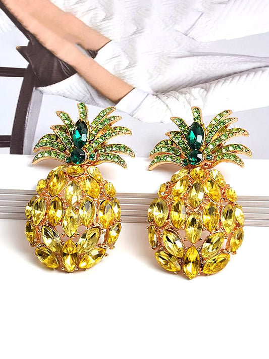 Earrings for Women and Girls Fashion Yellow Crystal Drop Earrings | Rhinestone Crystal Pineapple Drop Earrings | Birthday Gift for girls & women Anniversary Gift for Wife