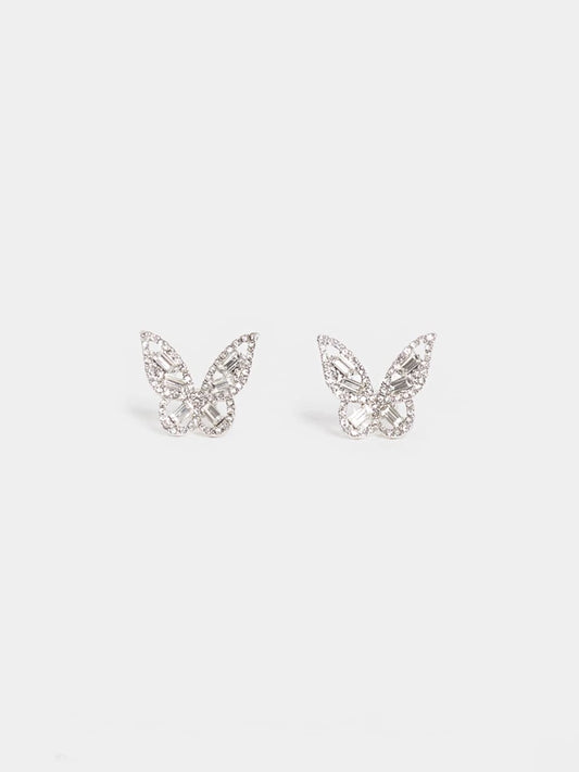 Earrings for Women and Girls White Stud Earrings for Women | Silver Toned Crystal Butterfly Shaped Stud Earrings | Birthday Gift for girls and women Anniversary Gift for Wife