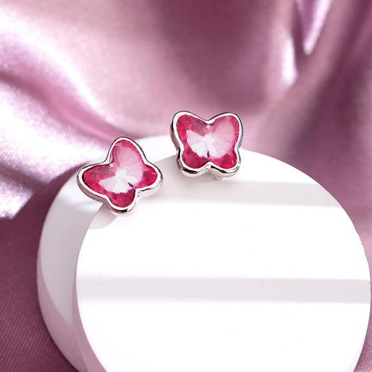Earrings for Women and Girls Crystal Studs Gold Tone Pink Crystal Butterfly Designed Stud Earrings Birthday Gift for girls and women Anniversary Gift for Wife