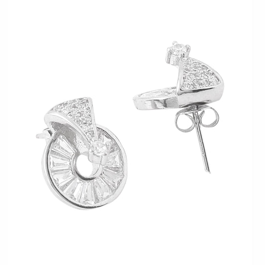 Earrings for Women and Girls Crystal Studs | Silver Tone Circle Designed Stud Earrings | Birthday Gift for girls and women Anniversary Gift for Wife