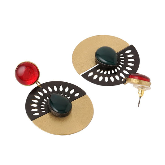 Earrings for Women Silver Oxidised Stone Studded Semi Round Drop Designed Earrings for Women and Girls