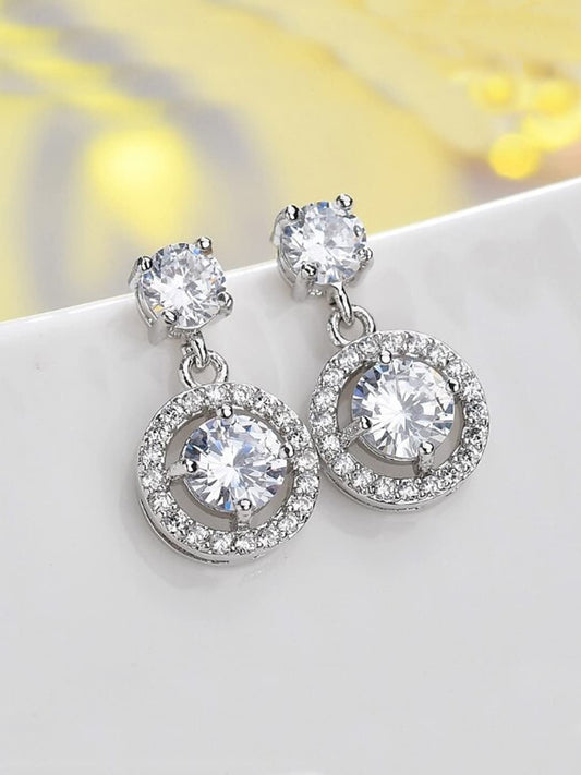 Earrings for Women and Girls | White Drop Earring | Gold Plated Drop | Circular Designed White Stone Hanging Western Drop Earrings | Accessories Jewellery for Women | Birthday Gift for Girls and Women Anniversary Gift for Wife