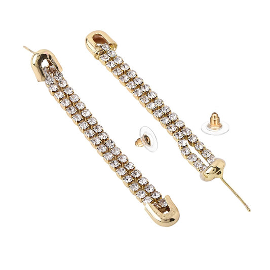Earrings For Women Gold Tone Stud With Linear Crystal Studded Chain Back Drop Earrings For Women and Girls