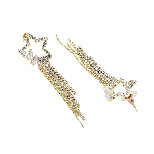 Earrings For Women Gold Tone Crystal Star Shape Long Chain Tassel Dangler Earrings For Women and Girls