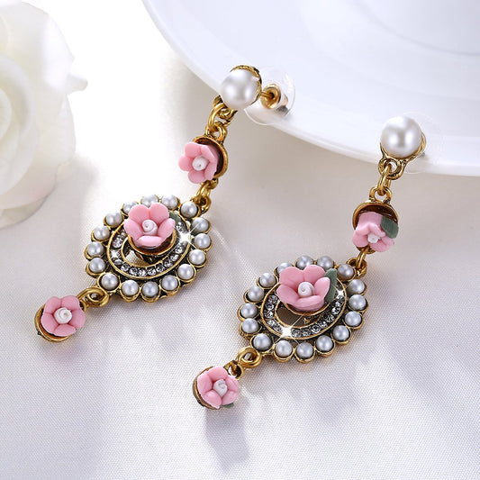 Moxie Collection Dangling Flower Earrings for Women and Girls (Pink)