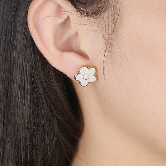 YELLOW CHIMES White Flower High Grade Enamel 18K Gold Plated Austrian Crystal Earrings for Girls and Women