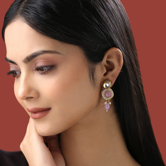 Kundan Style Smokey Crystal Wedding Traditional Earrings for Women & Girls