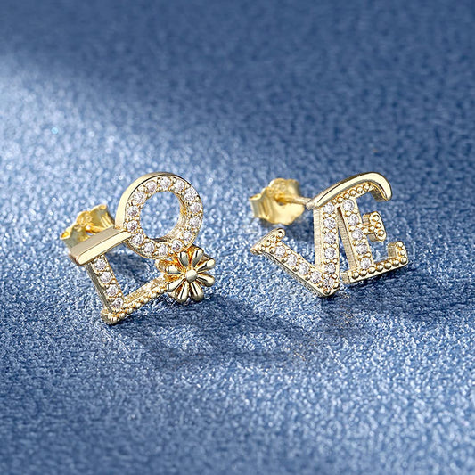 Earrings for Women and Girls Studs for Women | Gold Toned LOVE Stud Earrings | Birthday and Valentine Gift for girls and women Anniversary Gift for Wife
