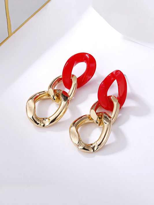 Earrings for Women and Girls Drop Earrings for Girls | Gold Toned Red Color Chain Drop Designed Drop Earrings | Birthday Gift for girls and women Anniversary Gift for Wife