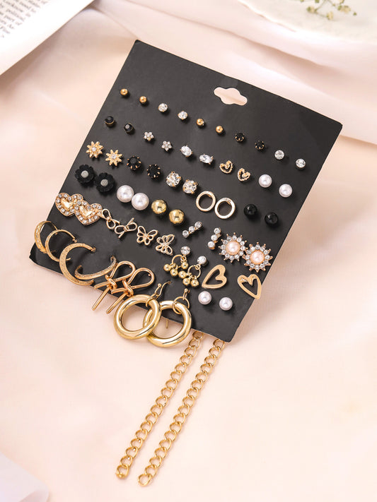 Stud Earrings for Women | Fashion Gold Earrings for Girls Combo of 30 Pairs Stud Hoop Earrings Set | Big Hoops Set Earrings | Chic Reverie | Birthday Anniversary Gift For Girls Women