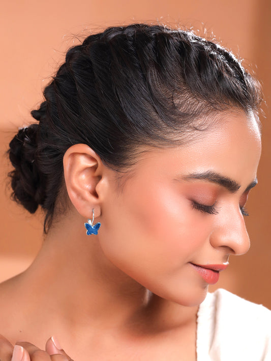Earrings for Women and Girls Blue Crystal Clip on Silver Tones Butterfly Shaped | Birthday Gift Anniversary Gift for Wife Valentine Gift for Girls