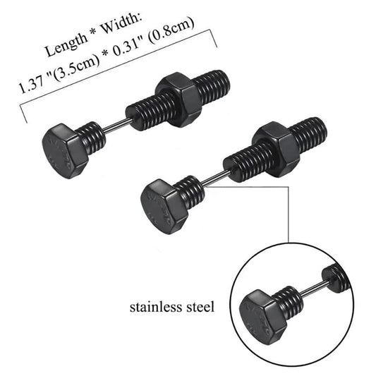 Stud Earrings for Men Stainless Steel Screw Design Black Stud Earrings for Men and Women