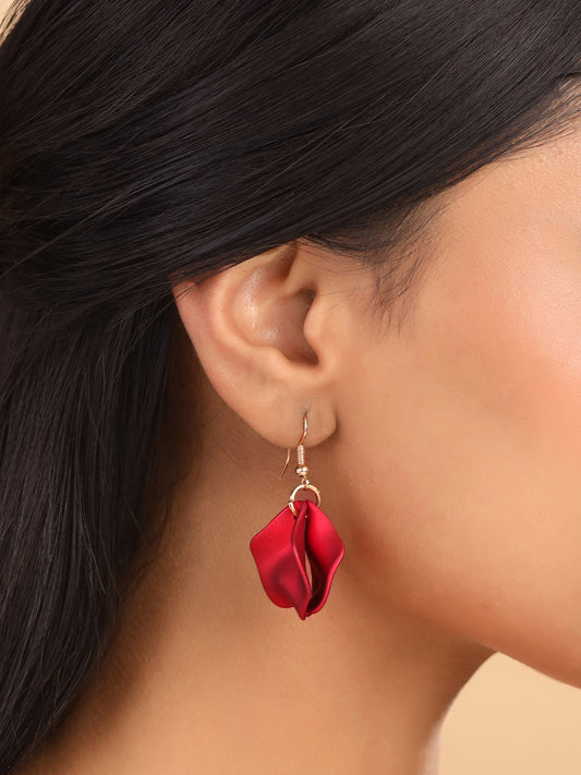 Fashion Red Drop Earrings: Gold Plated Rose Petals | Korean Style | 3.8 cm | Red