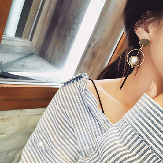 Geometric Asymmetry Circle Long Dangle Earrings For Women and Girl's