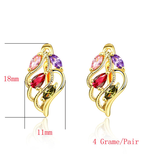 Flower Design Crystal Gold Plated Earrings for Women and Girls