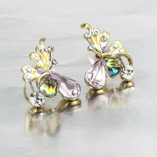 Moxie Collection Butterfly Multi-color Crystal Stud Earrings For Women & Girls (Pink)
