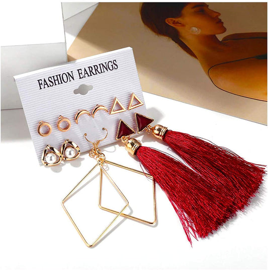 6 and 9 Pairs Assorted Multiple Stud Earrings Big Hoop Tassel Drop Pearl Earrings for Women and Girls (Trandy combo)