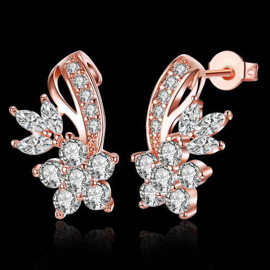 A5 Grade Crystal Rose Gold Plated Curvaceous Studs Earrings for Women & Girls