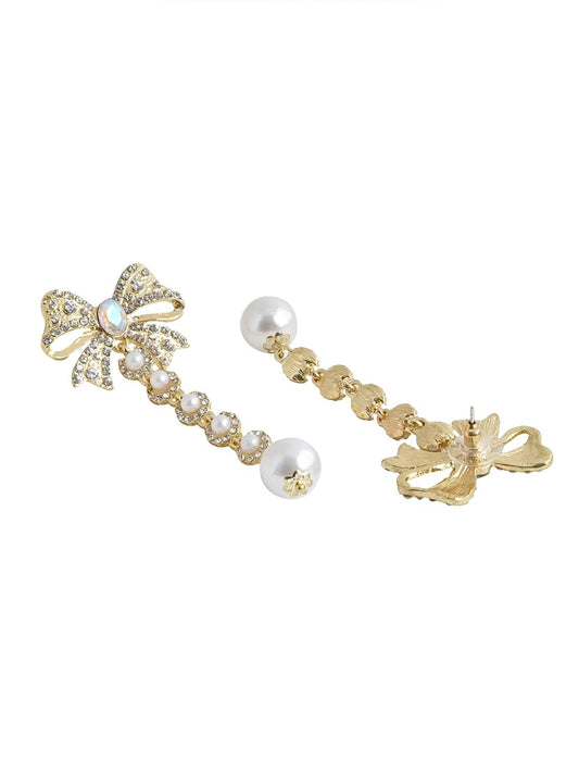 Crystal Dangler Earrings for Women | Bow Shaped Earrings for Girls | White Pearl Crystal Fashion Women Earrings | Gold Plated Danglers Birthday Gift For Girls Anniversary Gift for Wife