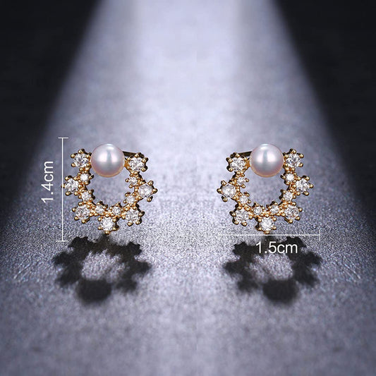 Latest Fashion Gold Plated Crystal Pearl Design Stud Earrings for Women and Girls, Medium (YCFJER-PRLSTUD-GL)