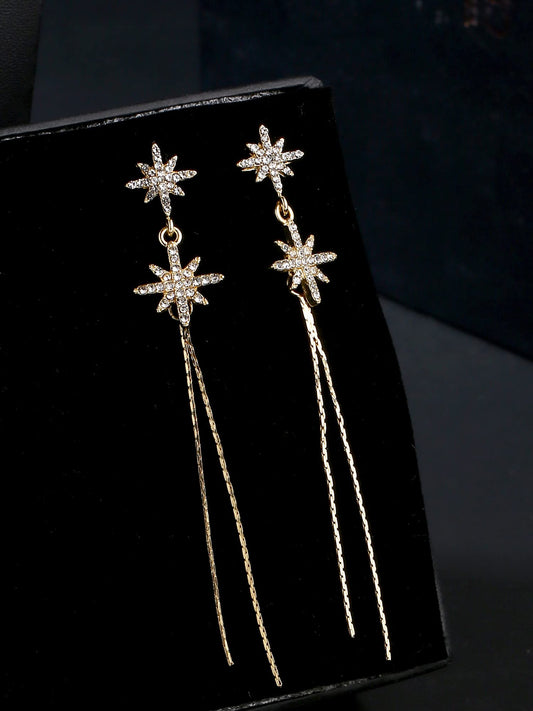 Earrings For Women Gold Tone Crystal Star Shape Long Chain Tassel Dangler Earrings For Women and Girls
