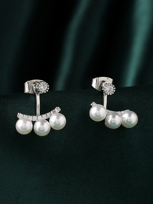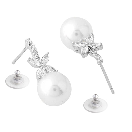 Earrings For Women Silver Toned Crystal Floral Designed Pearl Drop Earrings For Women and Girls