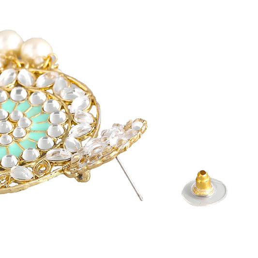 Ethnic Gold Plated Green Meenakari Touch Traditional Kundan Studded Round Design Pearl moti Dangler Earrings for Women and Girls, Medium (YCTJER-82KUDCR-GR)
