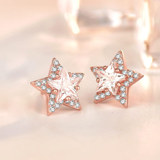 Elegant 925 Sterling Silver Hallmark and Certified Purity Star Design Crystal Stud Earrings for Women and Girls, Rose Gold, Medium