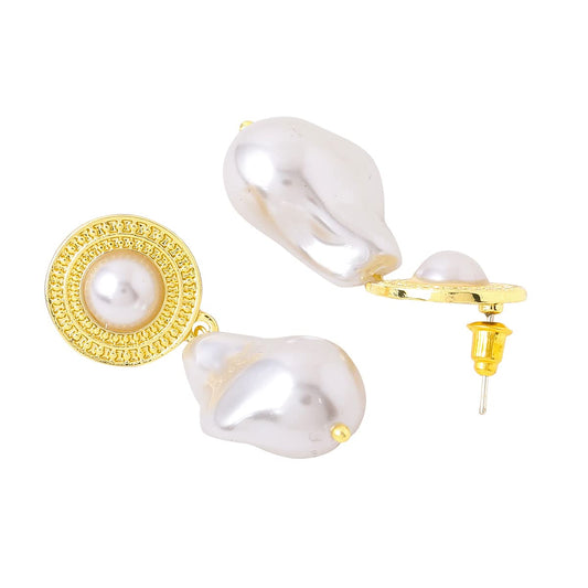 Earrings for Women and Girls Fashion White Pearl Drop Earrings | Gold Plated Faux Pearl Drop Earrings | Birthday Gift for girls and women Anniversary Gift for Wife