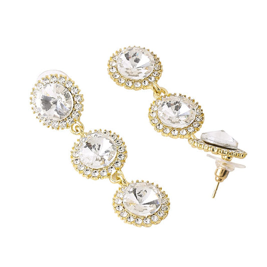 Earrings For Women Gold Tone Triple Crystal Round Shape Drop Earrings For Women and Girls