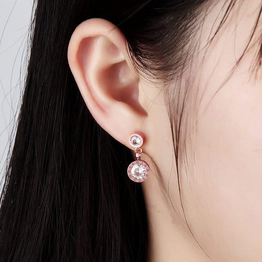 Crystal Earrings for Women Western Style Rose Gold Plated Stainless Steel Roman Numericals Engraved Crystal Drop Earrings for Women and Girls