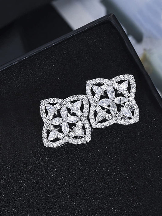 Stud Earrings for Women White Crystal Earrings Silver Plated Elegant Floral Stud Earrings for Women and Girls.