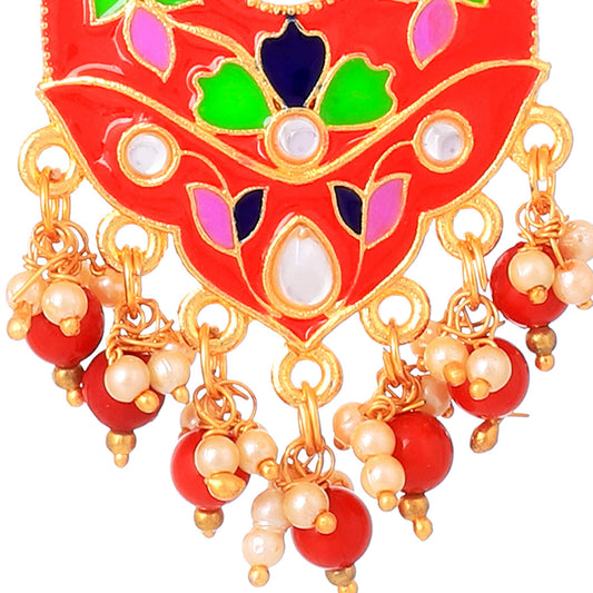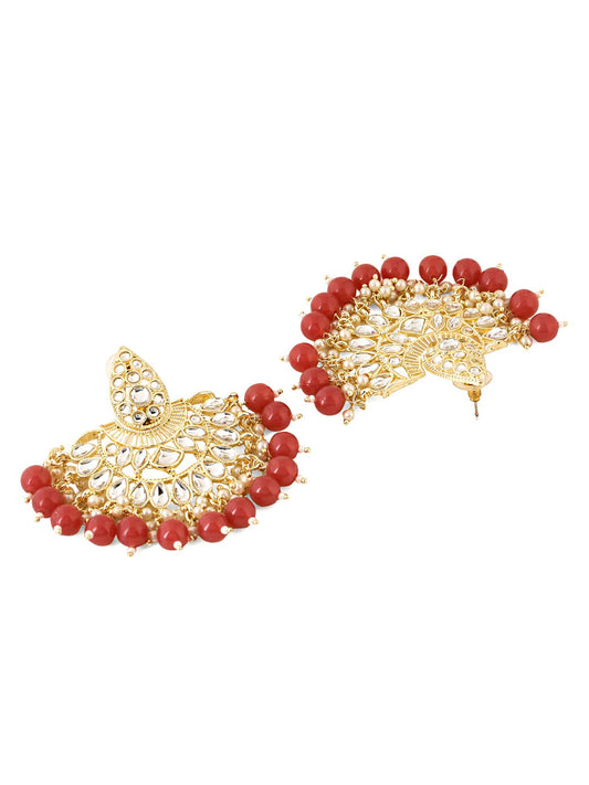 Earrings for Women Gold Toned Kundan Studded Red Pearl Drop Chandbali Earrings for Women and Girls