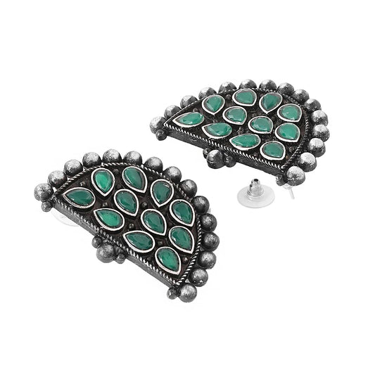 Earrings for Women and Girls Traditional White Stone Studded Silver Oxidised Studs|German Silver|Birthday Gift For girls and women Anniversary Gift for Wife