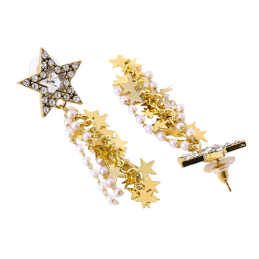 Earrings For Women Gold Tone Crystal Studded Star Long Multilayer Chain Tassel Pearl Drop Dangler Earrings For Women and Girls