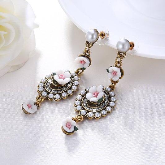 Moxie Collection Dangling Flower Earrings for Women and Girls (White)