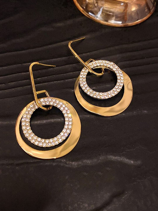 Earrings For Women Gold Plated Crystal Studded Double Open Circle Hanging Drop Earrings For Women and Girls