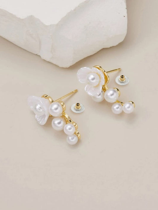 Earrings for Women and Girls Studs for Girls | Gold Plated White Pearl Studded Stud Earrings | Birthday Gift for girls and women Anniversary Gift for Wife