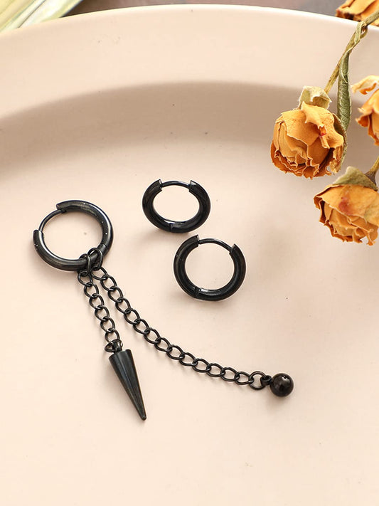 Earrings for Men and Boys 3 Pcs Stainless Steel Dangler Huggie Hoop Earrings for Men | Accessoriess Jewellery for Men | Birthday Gift for Men and Boys Anniversary Gift for Husband