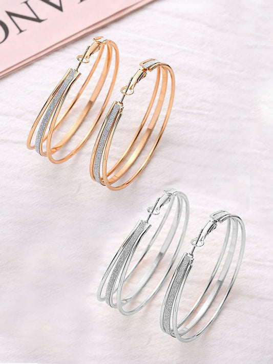 Earrings for Women and Girls Fashion Silver Gold Hoop Earrings | Combo of 2 Pairs Textured Hoops Earrings | Birthday Gift for Girls & Women Anniversary Gift for Wife