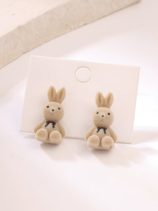 Earring For Women dramatic Light Brown Rabbit Shape Soft Cloth Material Small Stud Earrings For Girls and Womens
