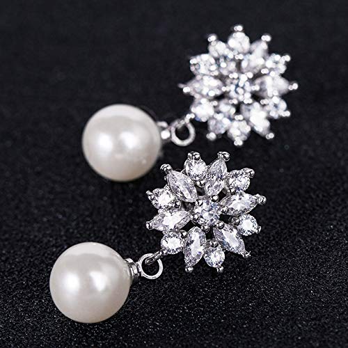 Drop Earrings for Women Crystal Flower Pearl Silver Plated Pearl Drop Earrings for Women and Girls