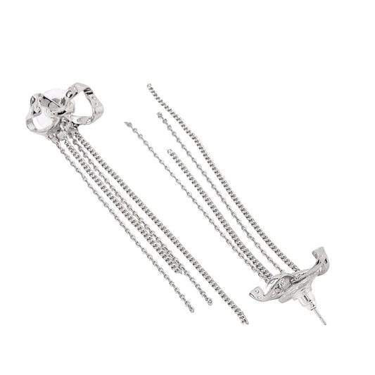 Earrings For Women Silver Tone Bow Shaped Linear Chain Fringe Dangler Earrings For Women and Girls