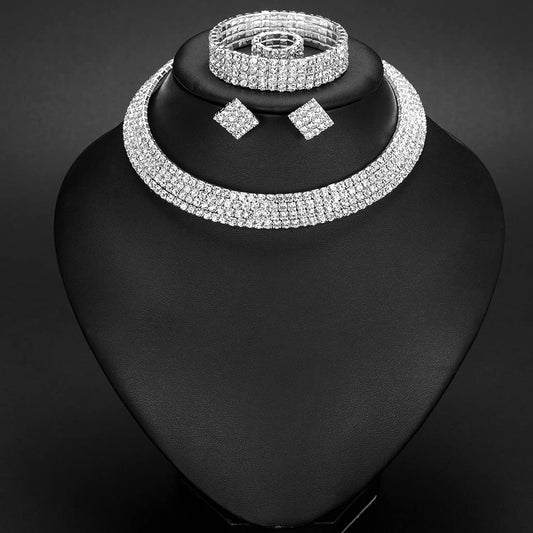 Crystal Jewellery Set for Women Crystal Jewelry Set Silver Plated Choker Necklace Set with Earrings for Women and Girls. (Design 17)