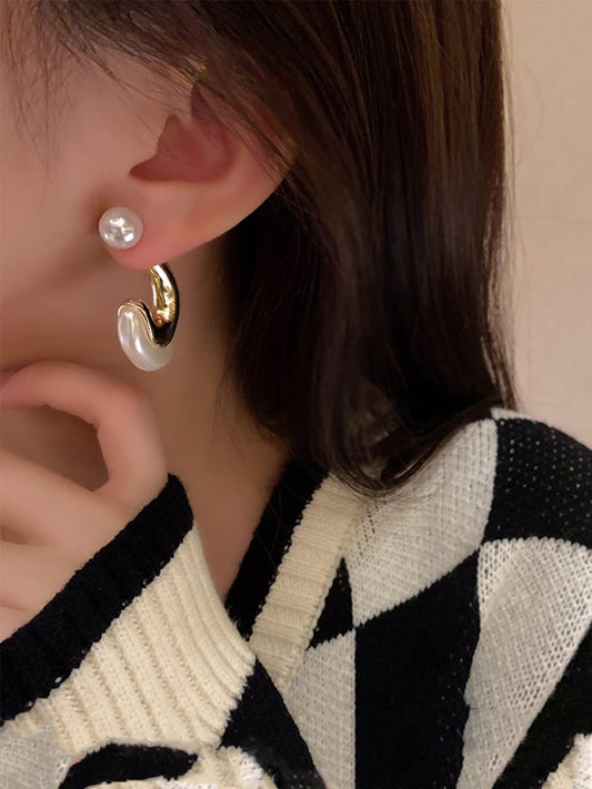 Set of 6 Gold Plated Pearl Contemporary Hoop and Stud Earrings For Women And Girls (Pack Of 10)