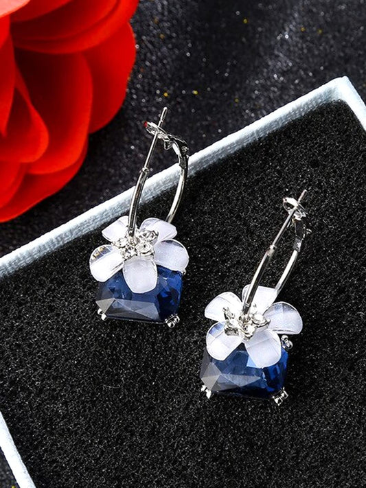 Earrings For Women Silver Hoop With Flower and Blue Stone Hanging Drop Earrings For Women and Girls